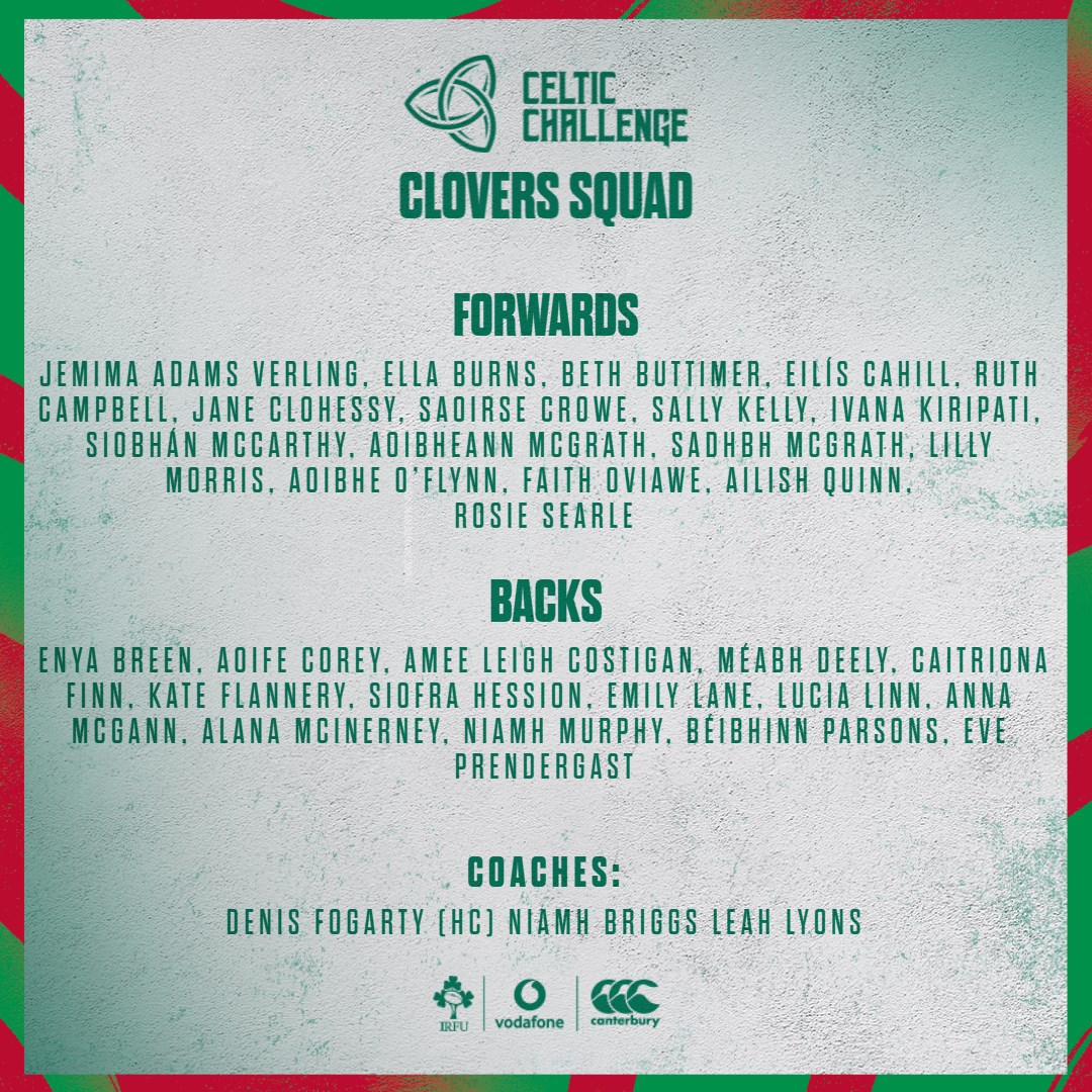 Backs: Megan Burns (Leinster), Katie Corrigan (Leinster), Aoife Dalton (Leinster), Vicky Elmes Kinlan (Leinster), Stacey Flood (Leinster), Jade Gaffney (Leinster), Eve Higgins (Leinster), Amy Larn (Leinster), Niamh Marley (Ulster), Kate Farrell McCabe (Ulster), Dannah O’Brien (Leinster), Robyn O’Connor (Leinster), Aoibheann Reilly (Connacht), Katie Whelan (Leinster)